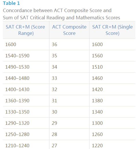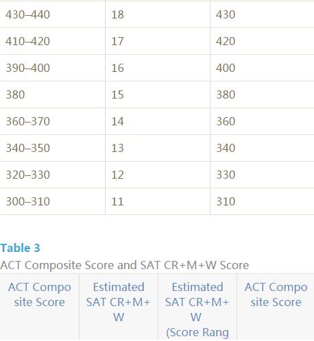关于这个表格,ACT官方和CB已经达成共识,表格目的不在于对于二者分数难易之间的争论,只为提供一个相同能力情况下不同考试的分数换算表格。