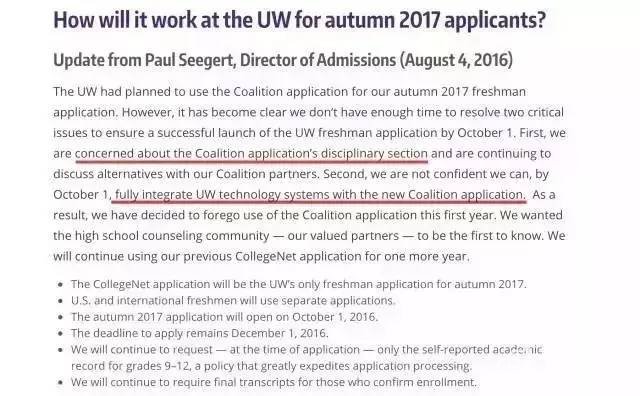 问题二:并没有信心在10月1日之前完全整合UW学校系统和联盟申请系统。