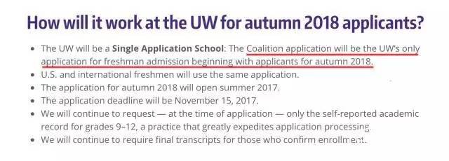 在网页的末尾,华盛顿大学同时也发表声明说:对于2018年秋季的申请者来说,CAAS申请系统将会成为他们唯一接受的申请方式。