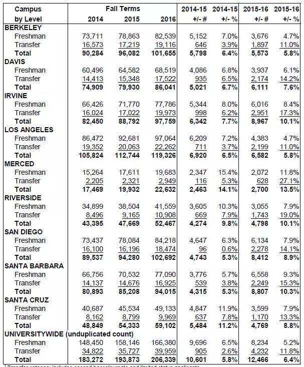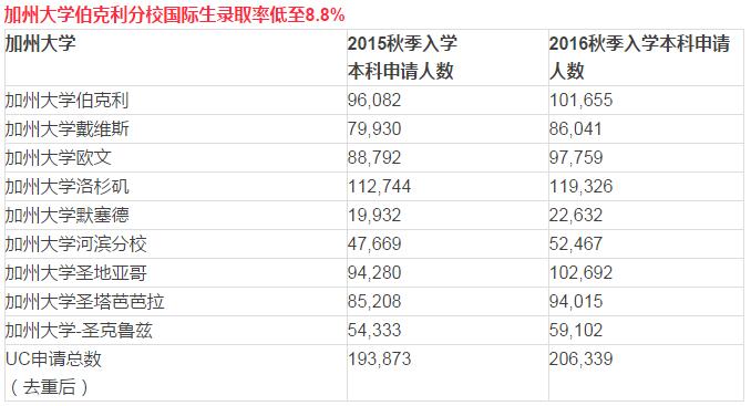加州大学录2014-2016取数据总览: