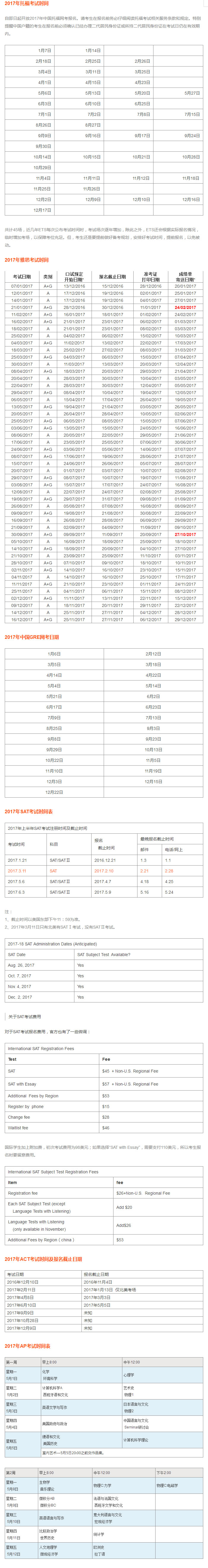 2017年美国留学考试时间汇总(TOEFL/IELTS/SAT/GRE/ACT/AP)丨美国留学