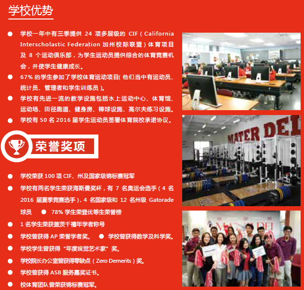 导读:梅特德伊高中是全美最大的天主教高中之一,拥有先进的教学设施。学校通过全苹果基础设施教学,成为首批被苹果公司认可的高中。1:1 iPad教学;138名学生荣获国家优秀奖学金;学校荣获100项CIF、州及国家级锦标赛冠军;学校有两名学生荣获海斯曼奖杯,有7名奥运会选手,4名国家级和12名州级Gatorade球员,78%学生荣登优等生荣誉榜,升学率100%,毕业生被常青藤名校录取;学术和体育项目超强!》》申请专线:400-000-7805,微信:liumeinet2014