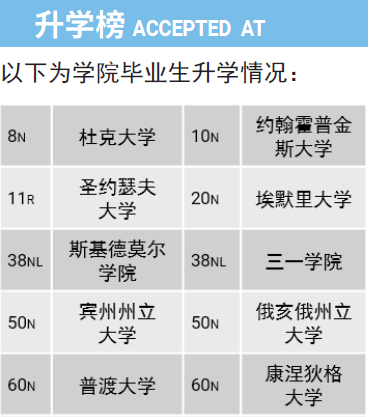 6、优秀的大学指导项目,校内有4名全职经验丰富的升学指导老师,从9年级开始,根据学生自身条件和兴趣,为学生量身定制合理高效的选课和学习计划