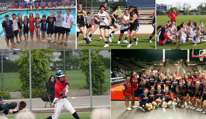 篮球basketball、棒球baseball、垒球softball、高尔夫球golf、、橄榄球football、英式足球soccer、网球Tennis、田径track and field、越野cross country、拉拉队cheer leading、长曲棍球lacrosse、水球Water Polo、排球Volleyball、游泳Swim