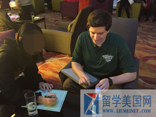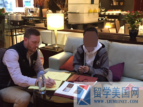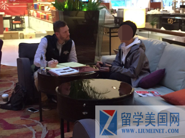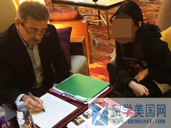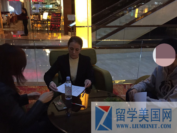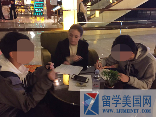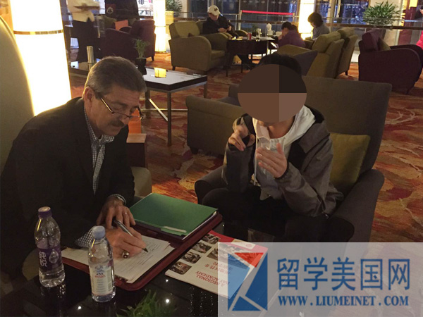招生官正在认真面试留美网的学生