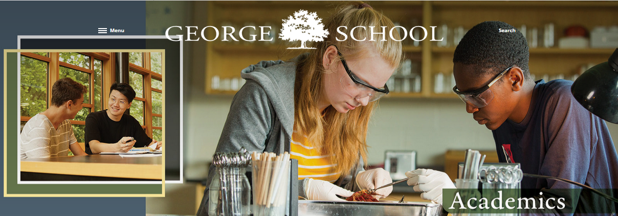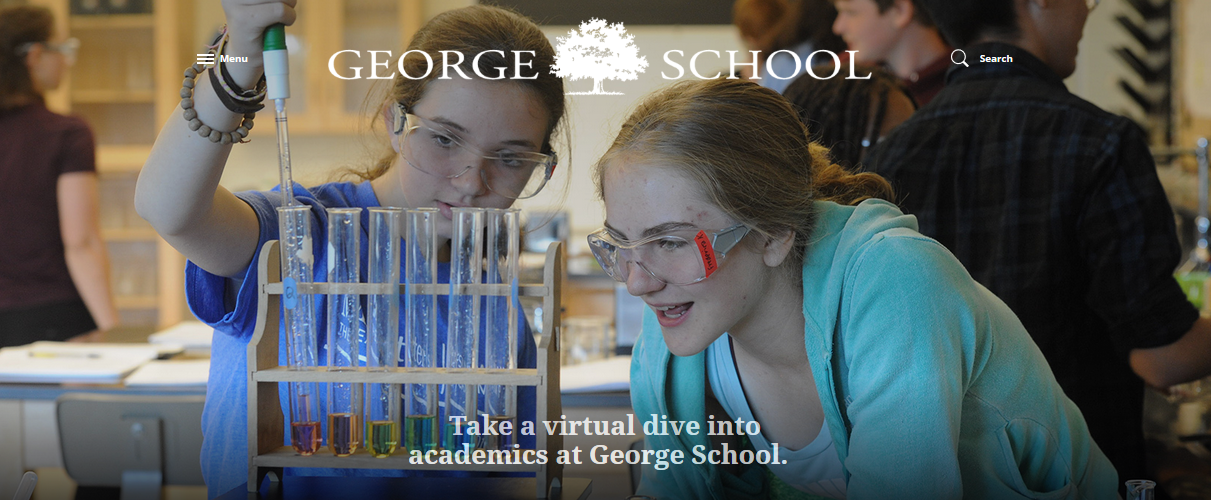 乔治中学最初由贵格教派创建于1893年,是一所男女合校、走读寄宿制高中。学校尊重个人、诚信与合作。学校占地240英亩,有开阔的草坪和美丽的树林。距离新泽西的普林斯顿的文化中心和宾夕法尼亚的费城的文化中心仅仅30分钟的路程,距离纽约也仅1.5小时的路程。该校硬件设施强,拥有10万平方英尺的健身和运动中心,包括4,200平方英尺的健身中心;一个8道泳池,12,634平方英尺的表演体育馆,2个可容纳400人的硬木球场,以及马场厩和两个跑马圈。学校为学生们提供了各类课程,包括英语二外(ESL),大学先修课程(AP)以及国际文凭(IB)课程。学校每年向超过51%的学生提供超过500万美圆的助学金,以保证有经济困难的学生可以在学校安心学习。学校致力于传播容忍,平等和社会正义的世界观,希望学生们在校园内努力学习,成长为在艺术,体育,学术各方面全面发展的优秀人才。