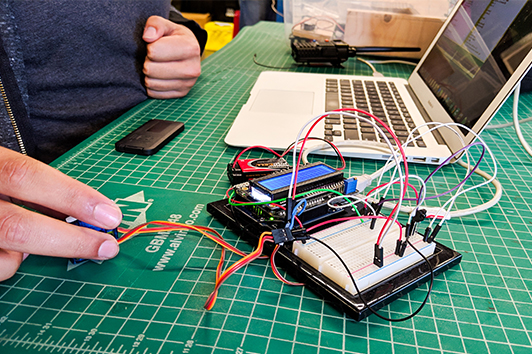 2、“设计商店”:2014年开放,包括了最先进的技术,学生可以通过构建模型、原型、机器人等项目发挥他们的创造力。学校重视STEM-科学、技术、工程、数学以及艺术/设计和人文科学。该设计商店提供一个3-D打印机、激光雕刻机、焊接熔接设备、电动工具、计算机电路工作区和其他设备。高级计算机课程和机器人团队都有充分利用这个空间,而许多不同班级的学生也能利用这个空间将理论转化为实践。