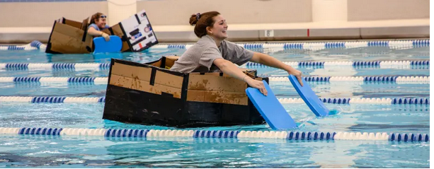 6.提供丰富的活动:学习工程课程的学生,每年有两次让学生设计他们自己的纸板船参赛等。