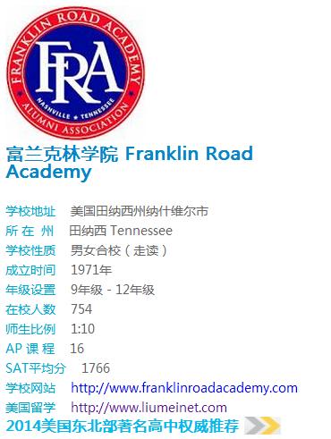 富兰克林学院 Franklin Road Academy历年毕业生进入院校
