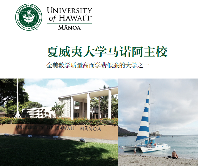 UHM 成立于1907 年,获得美国西部学校及学院协会认证,在USNews 排名为全美前150。夏威夷大学是一个公立的大学系统,现有3 所分校和7 所社区大学,共5 万余名学生。马诺阿主校区是夏威夷大学中的旗舰,拥有最大规模和最先进的教学设施,是一所具备国际水平的研究型大学。