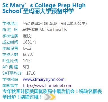 招生学校:圣玛丽大学预备中学