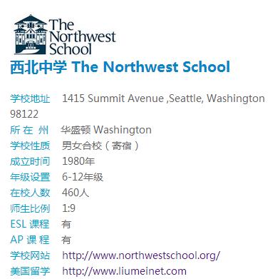 西北中学 The Northwest School 学校简介: