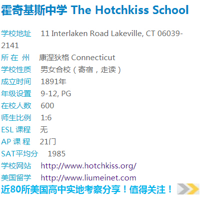 招生学校:霍奇基斯中学 The Hotchkiss School