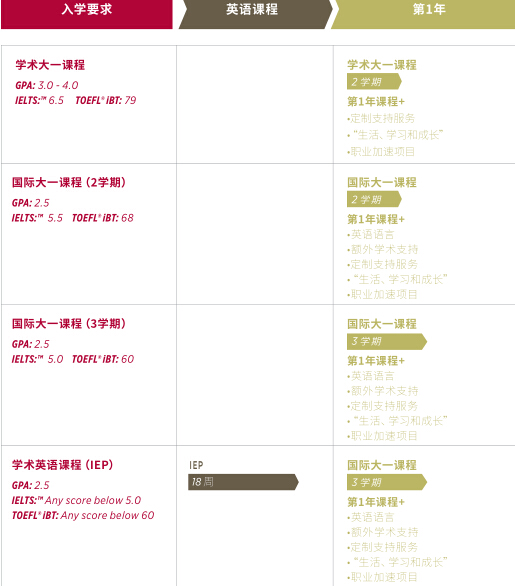 更适合国际学生的大一课程!学生以相对较低得语言成绩入读,一边强化英语能能力,一边就读专业课,两不耽误!节约时间及成本,让国际生更好的适应美国学习!