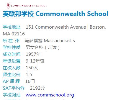 无宗教背景,师生比只有1:5.SAT平均分近2200分!藤校录取率约为24.5%!学校位于波士顿联邦大道,周围住宅是波士顿上层社会住宅区!需要托福及SSAT成绩,目前空出一个名额,感兴趣的学霸速联系:400-000-7805!