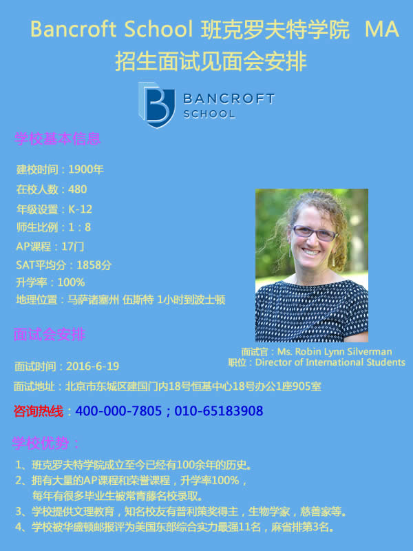 【6.19】Bancroft School班克罗夫特学院招生面试见面会