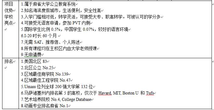 生活购物方便:学校周边有Walmart, Target or the Dartmouth Mall等大型购物中心和娱乐场所。学校内有接驳车可到这些购物中心。查尔顿商学院受到要求严格的国际商学院联合会(AACSB)的认可麻省大学达特茅斯校区连年被《美国新闻与世界报导》评为新英格兰地区的“最佳硕士培养大学”优秀师资:80%以上拥有所在专业最高学历;其中还包括诺贝尔奖获得者、普利策奖获得者、国际科学院成员美国图书奖获得者、富布赖特奖获得者、古根海姆奖获得者、麦克阿瑟奖获得者以及梅隆奖获得者。丰富经费:获得了国家科学基金会,美国国土安全部,国防部,教育部等丰富的经费,每年从政府得到的科研资助超过一亿五千万美金。