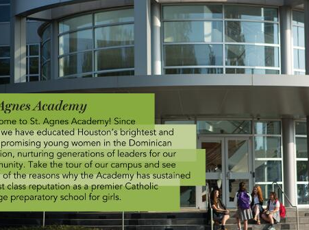 圣艾格尼丝学院是一所全日制大学预科艺术商务宗教技术女校。年级:9-12。成立于1906年。位于郊区的校园占地33英亩,有3所建筑。总注册人数871人。高中部平均每班22人,师资比例1:15。高中学生每年上学180天,每天6小时5分。
