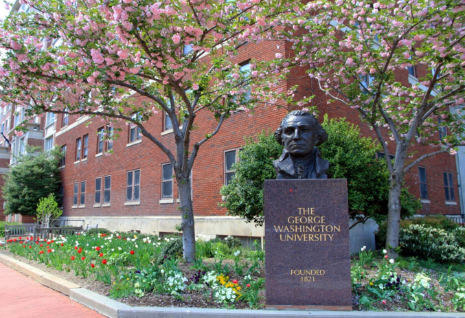 乔治·华盛顿大学位处于首都华盛顿的中心,距离白宫、国务院及世界银行等只有数步之遥。学校有三个校区。校区内设施优越,在教学楼、实验楼及宿舍楼建筑群中设有多个图书馆、体育馆、健身房、医院、各类大小型商店、餐馆、学生活动机构等。校内风景怡人,有多片大草坪,雕塑喷泉及樱花树林立,古典与现代建筑楼交相辉映。
