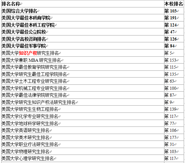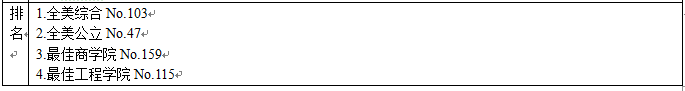 l 大学排名: 全美国家级大学第103名,全美公立大学46名