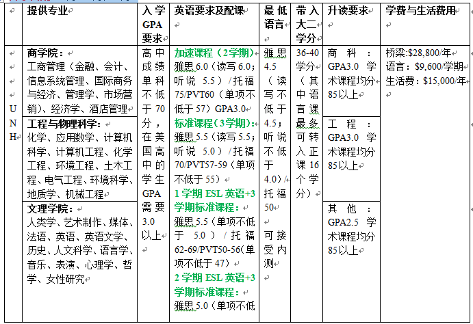 l 学校网站:www.unh.edu