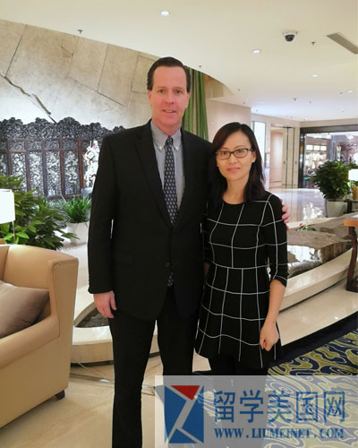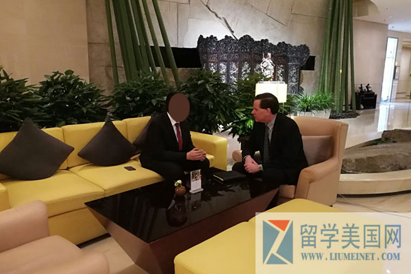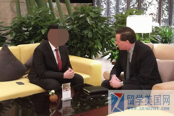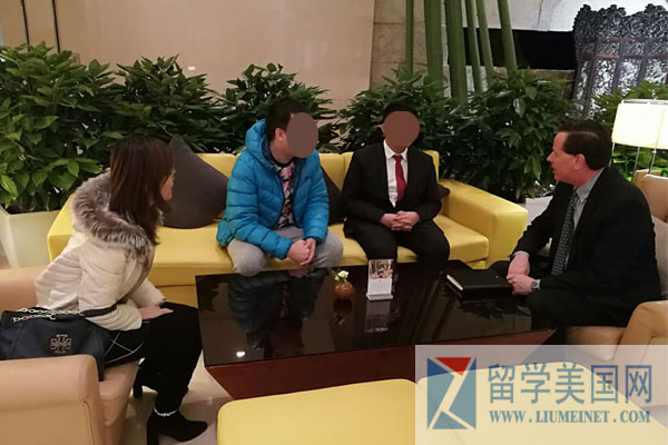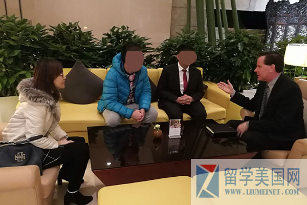 招生官与留美网总监石老师、学生、学生家长一起沟通学校的事情