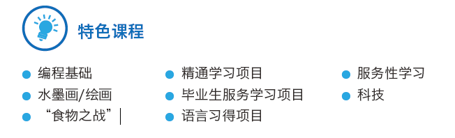 艺术课程(绘画、音乐、摄影)非常突出,老师均为各自领域的专家。