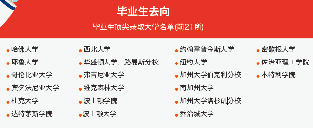 拥有顶尖的大学升学辅导团队,毕业生成绩优秀,是很多大学招生代表的优先选择。