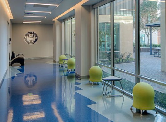 学校配有:两个体育馆,舞蹈室,瑜伽室,照明田径场,网球场,健身房