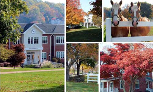 学校占地208英亩,风景如画,包括: 花园、温室、池塘和溪流,还有一个工作农场和养蜂场。学校的老师和学生积极使用这些学习资源。