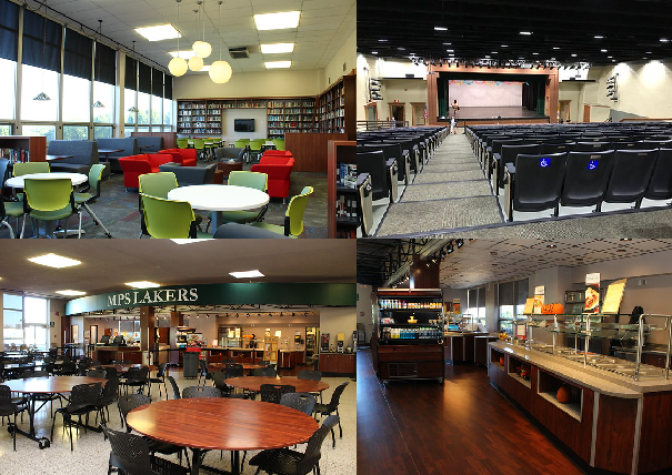 教学楼,音乐教室,棒球场,网球场,图书馆,剧院,篮球场,科学实验室,体育馆,垒球场,活动中心,计算机室,健身房,橄榄球场,全校WiFi,美术教室,游泳池,田径跑道,餐厅,教堂等。