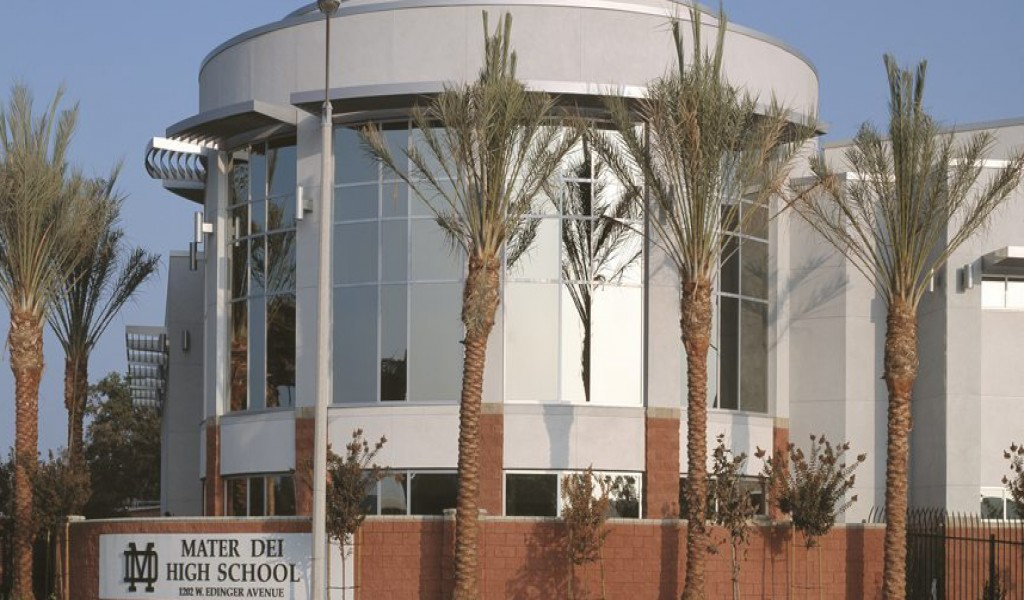 Mater Dei High School梅特德伊高中是全美最大的天主教高中,学校总人数超过2000人,但是学校依然坚持精英小班教学制,每个班级人数不超过13人,和非宗教独立学校相当。学校通过全苹果设施教学,成为首批被苹果公司认可的高中。