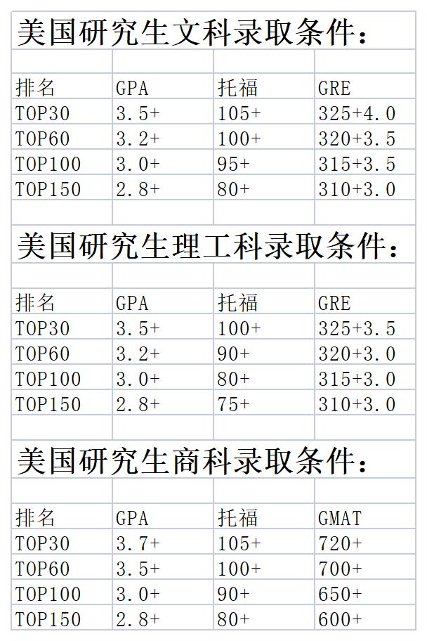 美研申请与美本申请相同点在于都没有明确的成绩要求,这也就导致学生很难确定什么自己应该申请什么样的学校。今天留学美国网就为大家总结一下美国研究生申请文科、理工科、商科的总体录取条件。
