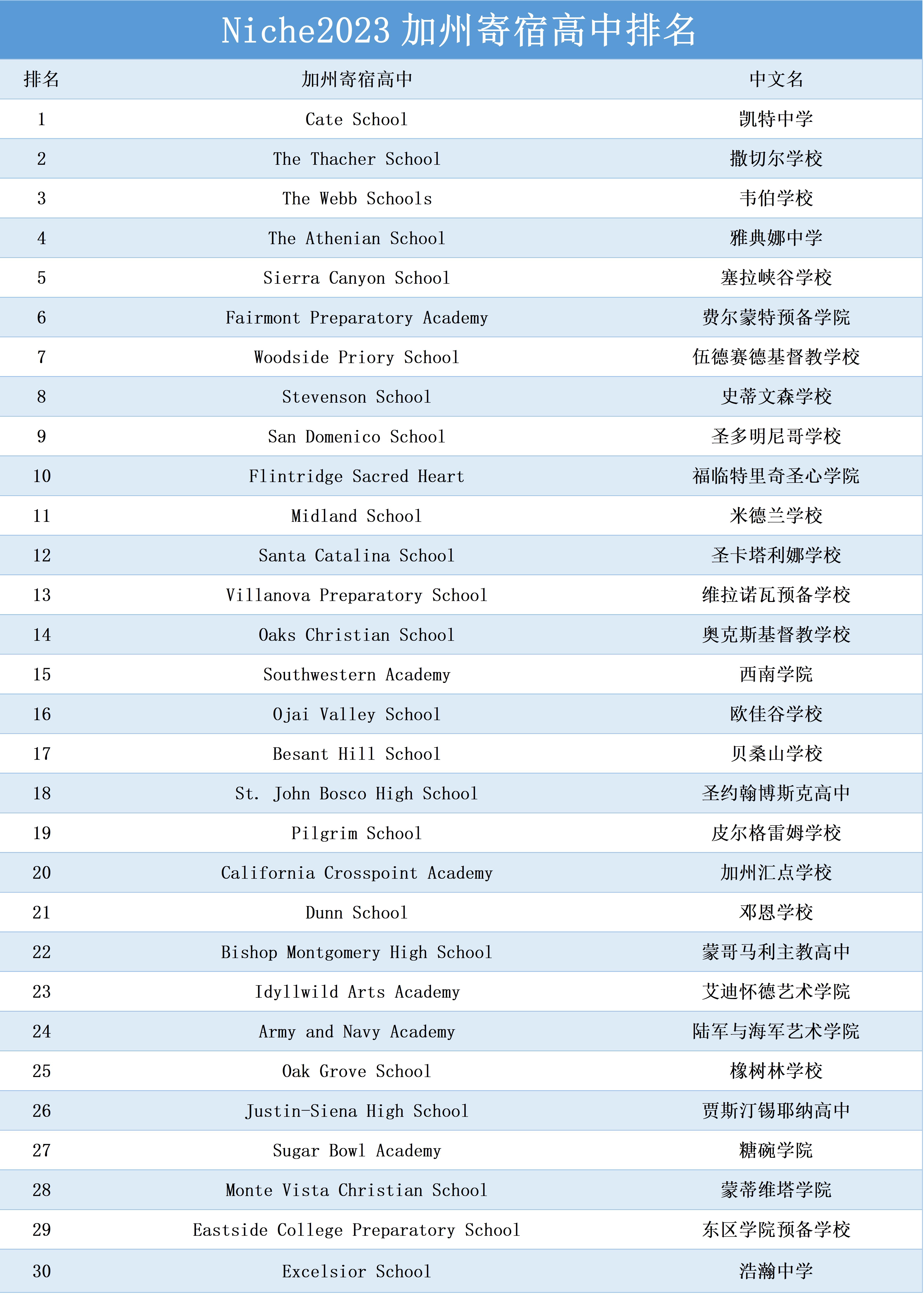 今天留学美国网就为大家介绍2023年最新的加州寄宿高中排名!
