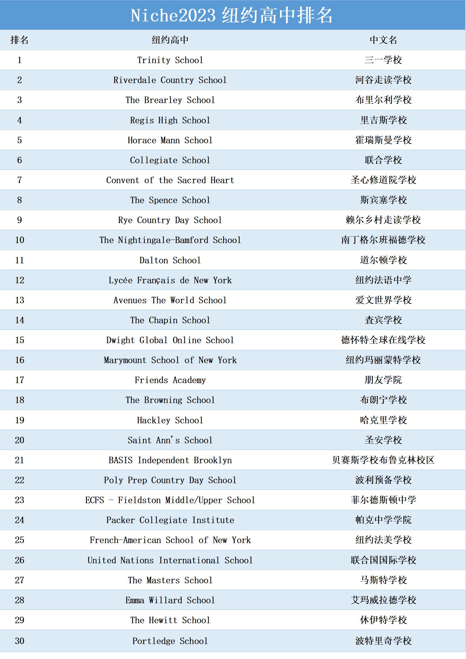 纽约州内有许多著名大学,哥伦比亚大学、康奈尔大学、纽约大学、伦斯勒理工学院、罗切斯特大学等。是纽约州的名校,对该州的私立高中有一定的辐射和带动作用。