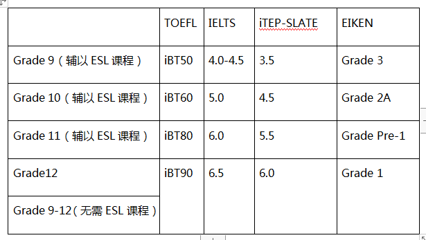 国际学生达到英语熟练最低要求者,可免除参加ESL课程,并可立即进入高中部正式课程选读。