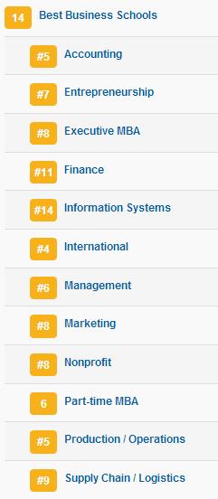 本科最佳商学院:2,下面是具体分支的排名: