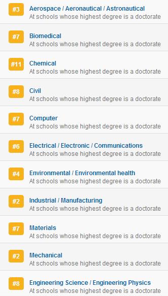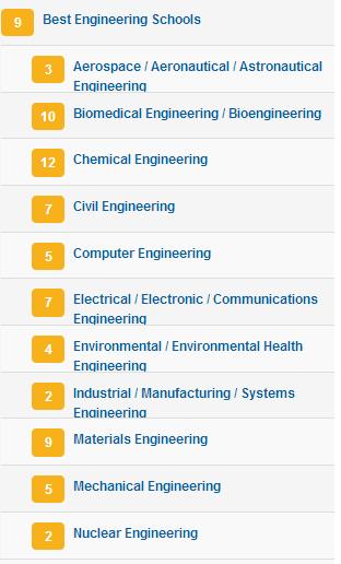 本科最佳工学院:7,下面是具体分支的排名: