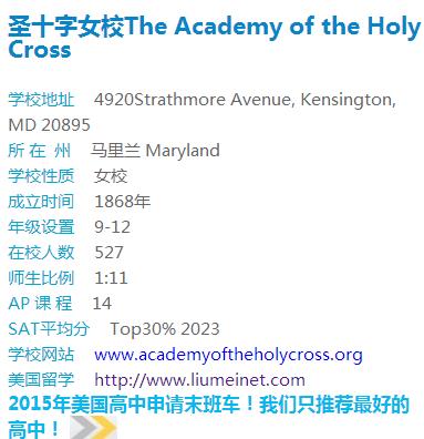 圣十字女校The Academy of the Holy Cross获得了中部学院和中学协会的认证,也获得了马里兰州教育部的认证。