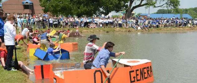 寓教于乐是博德中学的一大特点,学校每年5月有一个盛大的活动——物理划船大赛(Physics Boat Race),12年级物理课的学生需要用纸板制作船只,并坐在自己的船里在学校的“博德湖”进行划船比赛,看谁的船能够不沉,谁的船划得最快最远。已经举行19届的这项大赛每年都吸引全校师生和学生家长前来围观助兴。这项比赛可不仅仅是为了好玩,“学生需要充分计算、画设计图、安排预算、购买材料,并详细描述自己制作船只的过程,”学校的物理老师Owens说:“这些都是计入学生的物理课成绩的。”