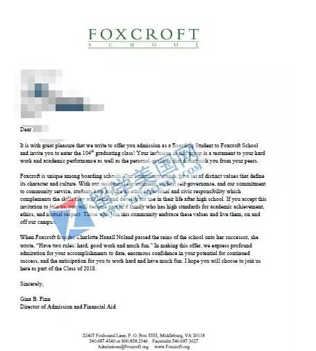 Foxcroft School是美国弗吉尼亚州非常棒的寄宿高中,学校唯一的最后一个名额被留学美国网的学生获得!从申请学校到拿到签证仅用了十天时间,可谓神速!