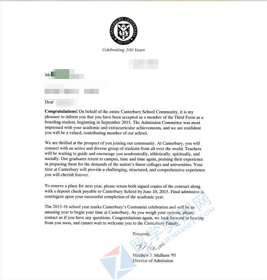 王同学终获顶级寄宿坎特伯雷中学的录取!王同学6月份补录到该校,不得不说是个逆天奇迹,是留学美国网中美团队与孩子共同努力的结果!之所以称之为“逆天”的标签,是因为孩子找到我们时,一切的申请因素都处于被动地位。