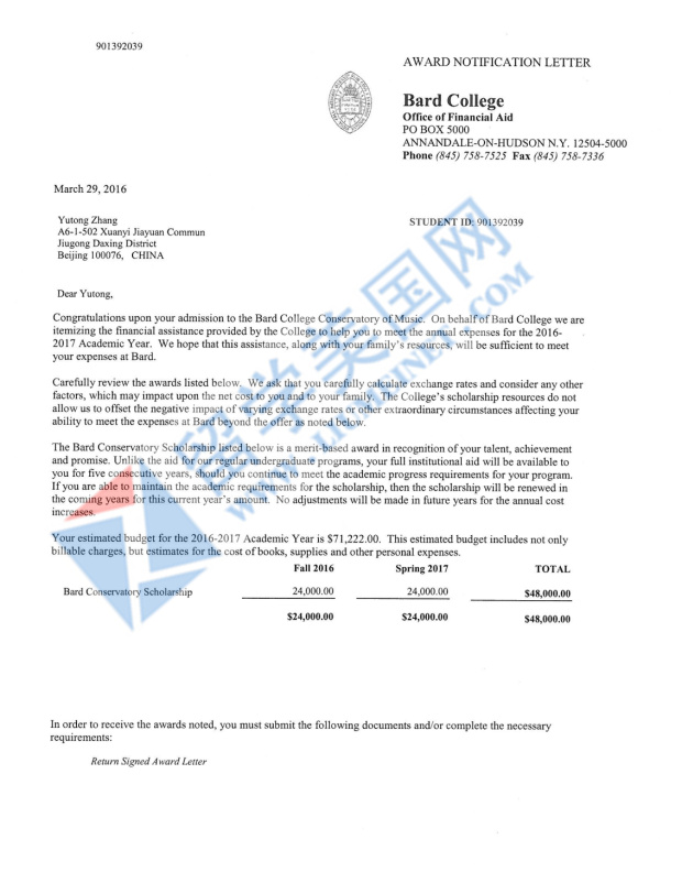【美国文理学院热招】恭贺留学美国网学生被巴德学院Bard College录取