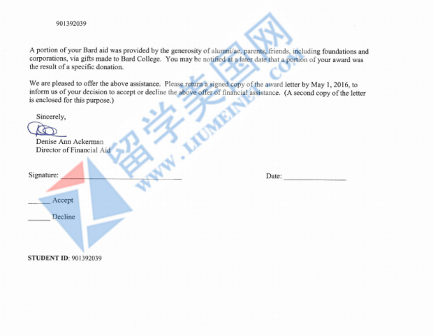 恭贺留学美国网学生被巴德学院Bard College录取。