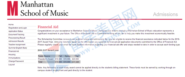 【美国大学热招】恭贺留学美国网学生被美国曼哈顿音乐学院录取