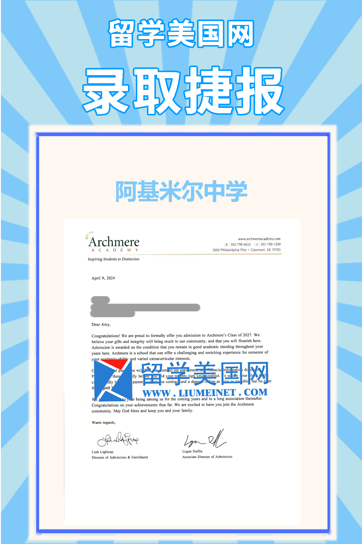 刚刚,迈润肯又收获一枚补录offer—特拉华州顶尖走读学校-阿基米尔学校Archmere Academy。L同学在标化成绩不高的情况下,成功申请到美国总统拜登母校。