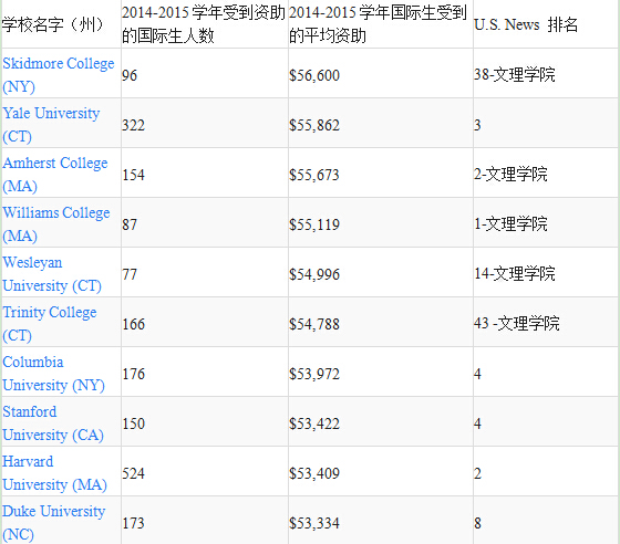 那么美国有哪些学校对国际生提供更多的支持呢?