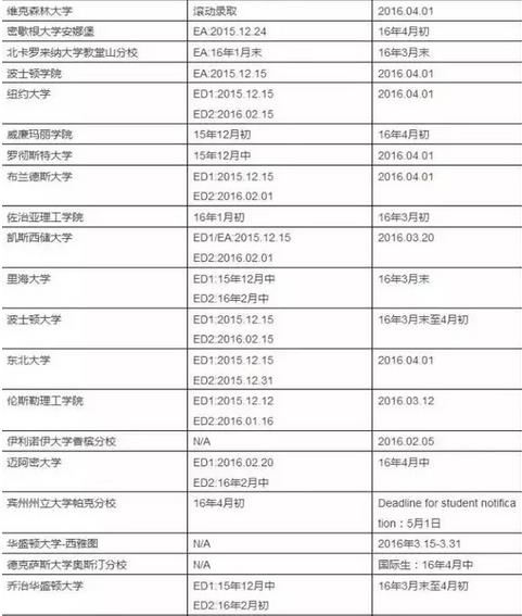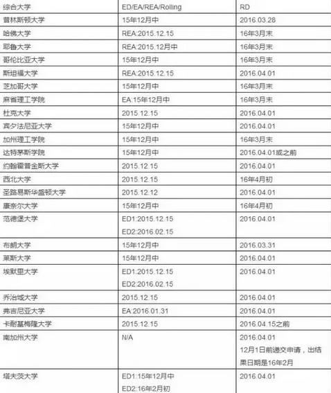 美国Top100大学录取时间表--综合大学篇!