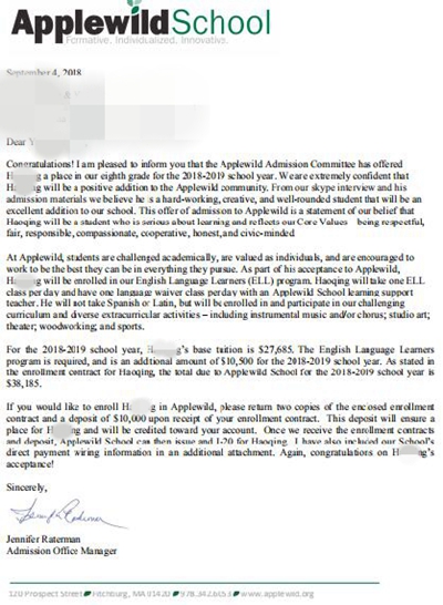 成功案例:恭喜S同学获得苹果园中学Apple wild school录取