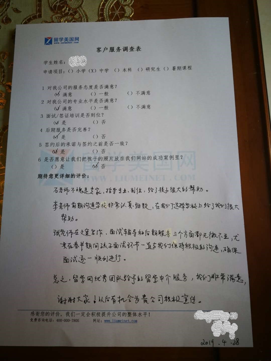 该生在校成绩优秀,曾经多次参与美国游学及科学夏令营活动。兴趣爱好非常广泛:喜欢物理,STEM课程,计算机编程,短跑运动和生物。学生性格开朗,学习刻苦,对美国学校申请充满了信心和决心。学生家长事业成功,十分支持孩子申请美国中学,在申请过程中也全力配合文案老师的工作,为申请成功做出了巨大的努力。孩子体育方面很强,擅长短跑,曾经多次打破学校运动会短跑记录,获得过多项荣誉。同时学生受家长影响,对于STEM课程十分感兴趣,在学校期间连续多年荣获“物理小院士”荣誉,2019年初获得了南京市物理竞赛二等奖,他也对机器人和计算机编程非常感兴趣,想去美国深入学习。该生在学校各科成绩都不错,一直以来都在学习外教口语课程,英语基础较好。该生是一个自信,阳光,很有耐心的学生,适应能力也很强。家长热情开朗,为孩子提供了很好的学习环境,也为学生择校提供了很多参考意见。